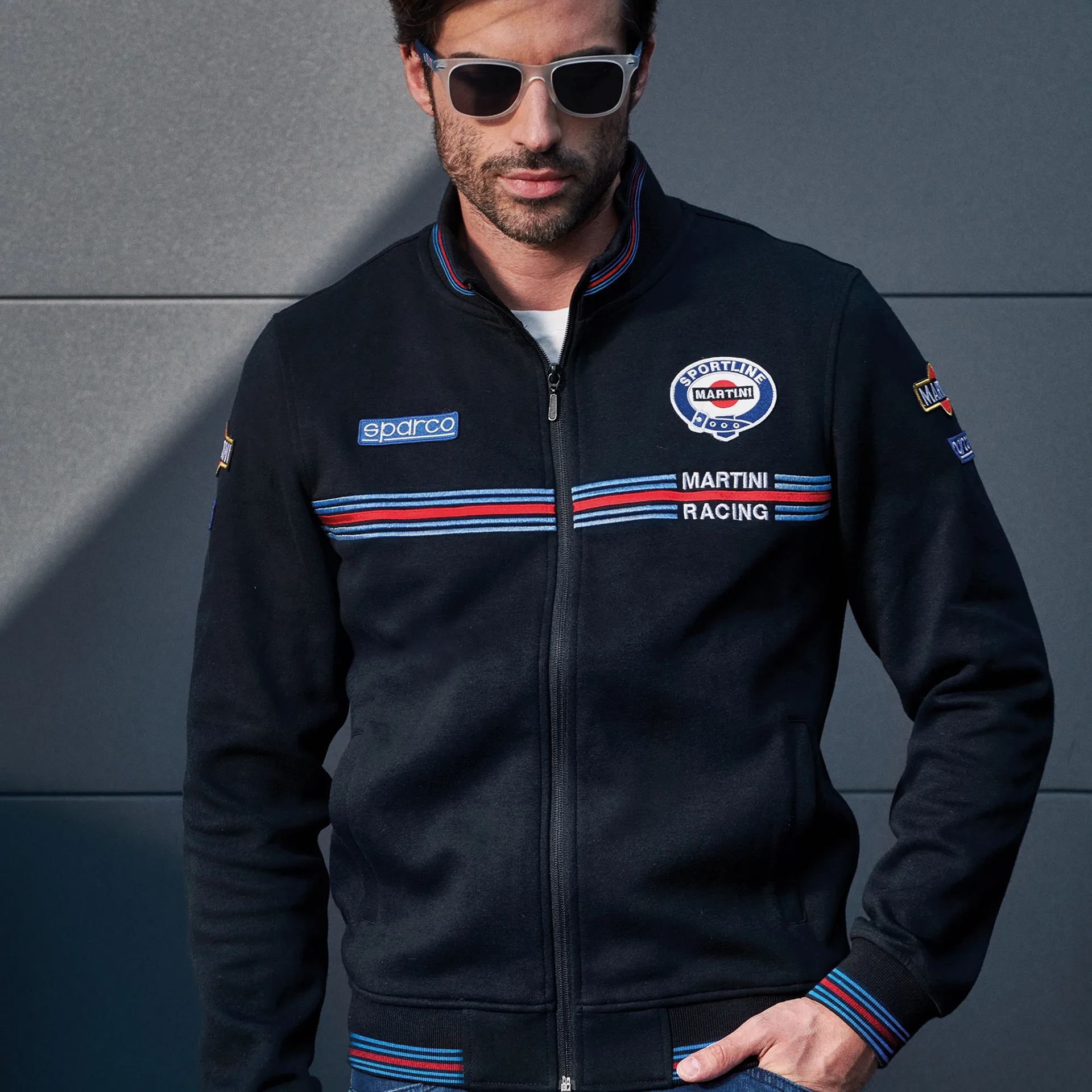 This full zip sweatshirt from Sparco is made from 100% cotton and features Martini racing stripes and logos reminiscent of the iconic Sparco-Martini race suit. Ideal for Motorsport fans.